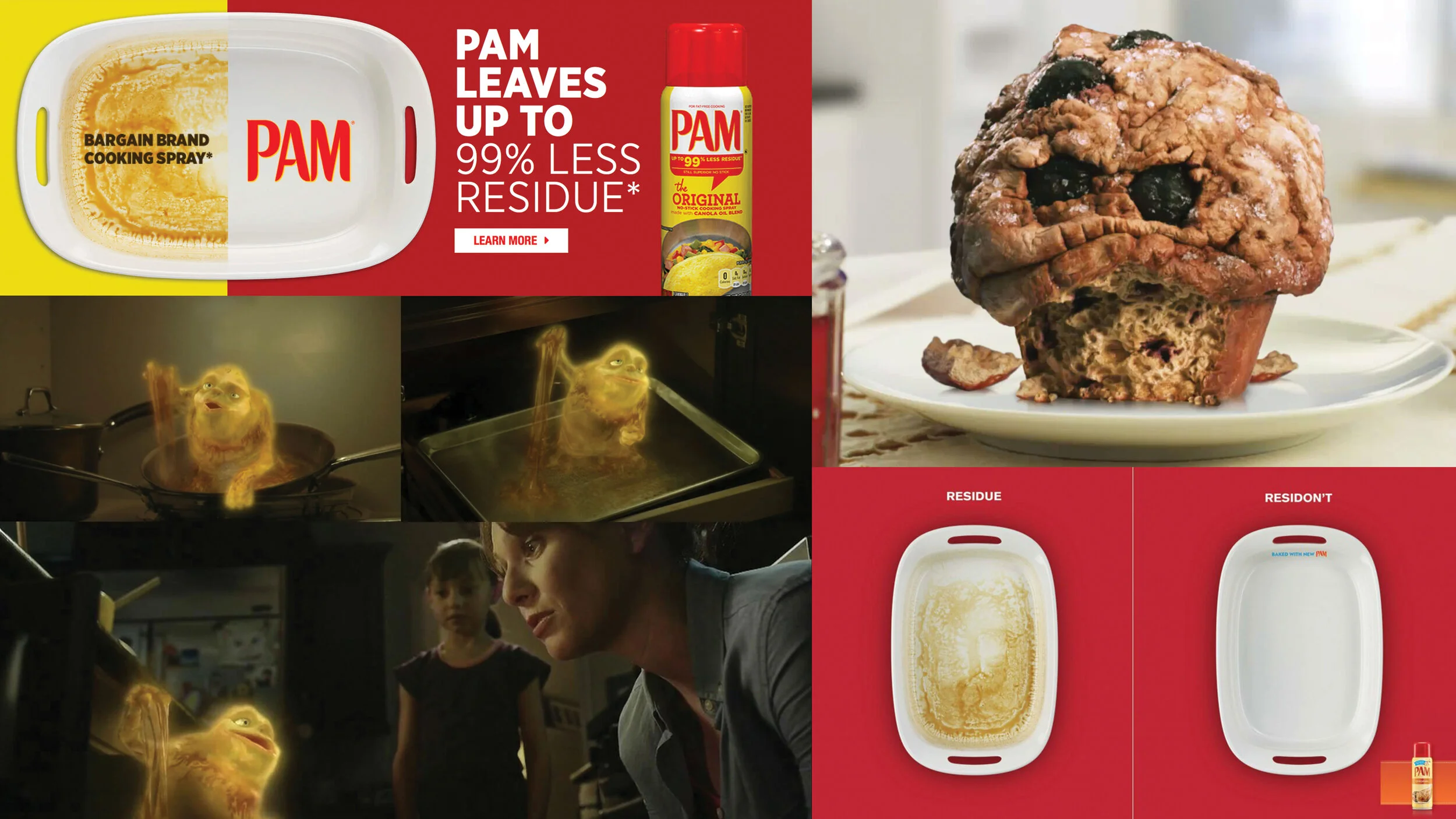 Along with the brand relaunch starring the Swedish Chef, the overall PAM brand look was completely reconsidered. Anchored in a history of red and yellow, PAM has focused on claims of no residue, no stick, and no mess. That’s a lot of “no” from a brand that really means “yes.” A modern overhaul of PAM communications required reconsidering and redesigning branding including: the website, print, tv, digital, developing a social presence, and creating a lighthearted, empowering brand voice.
